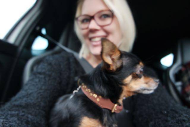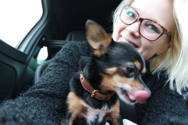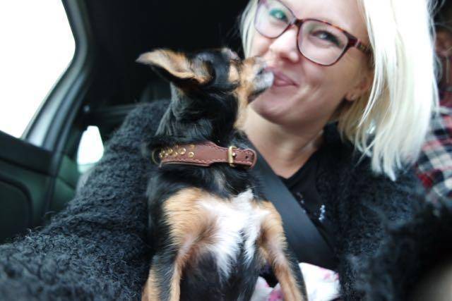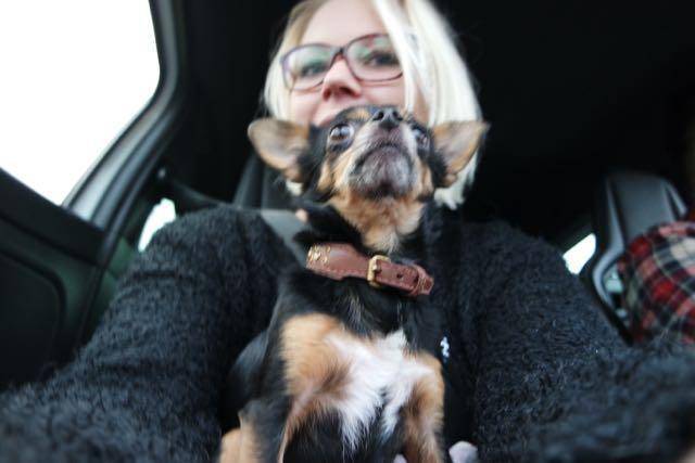We zijn weer onderweg! Zoë heb ik, in plaats van in haar hokje op de achterbank, dit laatste stuk op schoot genomen. Ik heb een heerlijk fleecedeken op mijn schoot liggen zodat ik het zelf warm heb maar Zoë hier ook lekker in weg kan kruipen! Dan is het tijd voor een aantal foto’s. Ze heeft totaal geen zin om in de camera te kijken vandaag dus ze zijn allemaal een beetje apart geworden haha!